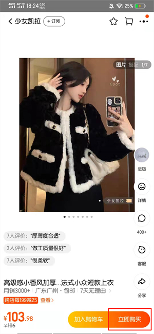 在商品的界面中,点击立即购买。