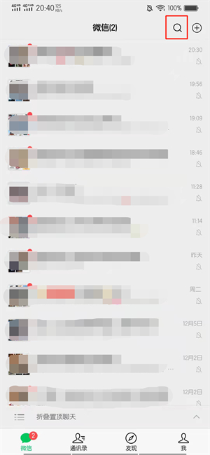 在微信首页的界面中,点击搜索图标。