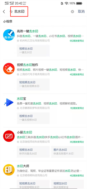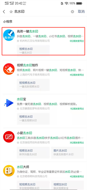 在搜索结果的界面中,点击去水印。