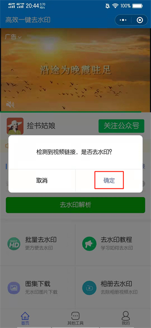 在去水印的界面中,点击确定。