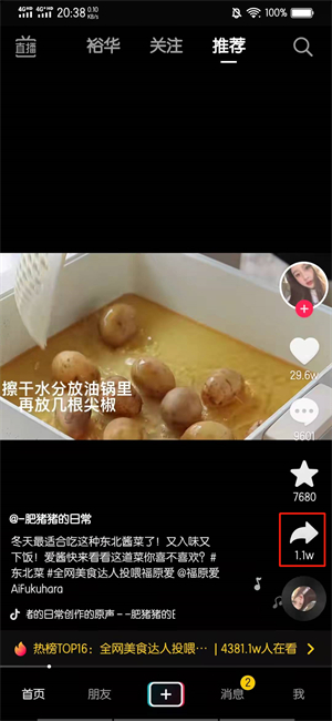 去除抖音上的水印需要保存抖音视频后,在微信去水印小程序界面中进行操作即可。以vivos9手机为例,去除抖音上的水印的步骤为7步,具体操作如下:在抖音首页的界面中,点击分享图标。