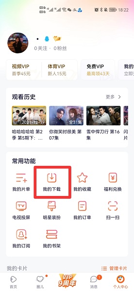 腾讯视频本地缓存的视频不能导入本地相册,只能在腾讯视频中进行观看。以手机华为p50为例,查看腾讯视频缓存视频的步骤分为2步,具体操作如下:在腾讯视频我的界面中,点击我的下载。