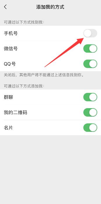 进入页面后,可以看到添加方式选项,将手机号右侧按钮开启即可。