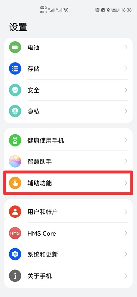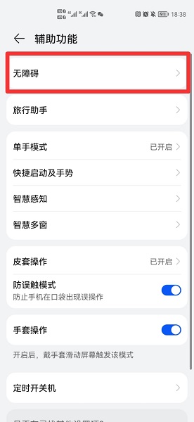 在辅助功能中,点击无障碍。