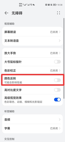 在展开的界面中,关闭颜色反转即可。