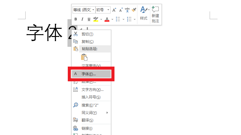 在右击内容展开的选项中,点击字体。