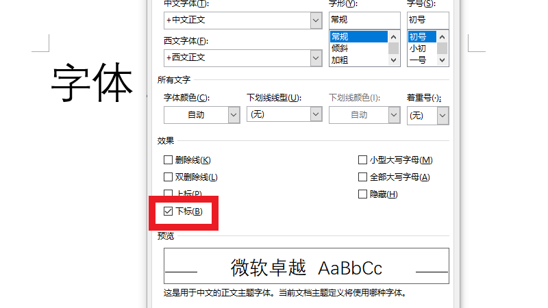 在展开的窗口中,勾选下标即可。