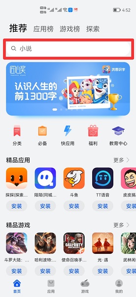 查找抖音客户端需要在手机应用市场中,搜索抖音并安装即可。以手机华为p50为例,查找抖音客户端的步骤分为3步,具体操作如下:在华为应用市场界面中,点击顶部搜索框。