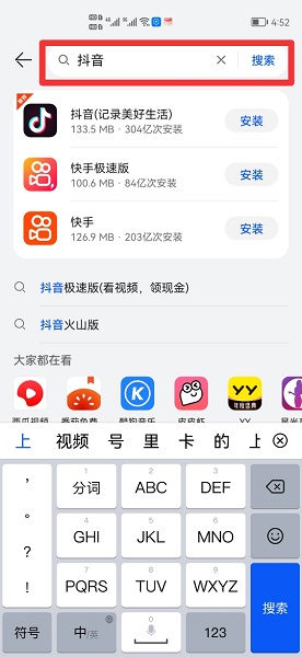 在搜索框中,搜索抖音。