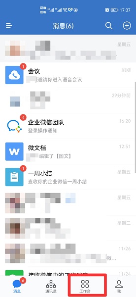 进入企业微信会议需要在企业微信工作台中,点击会议进入即可。以手机华为p50为例,进入企业微信会议的步骤分为4步,具体操作如下:在企业微信界面中,点击底部工作台。