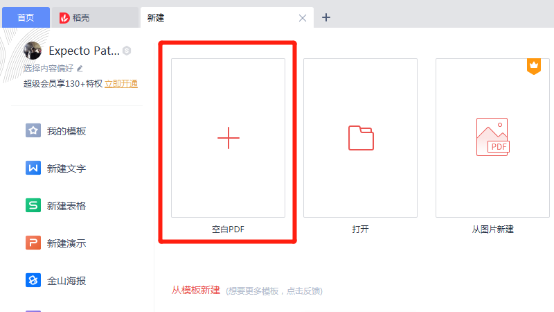 在展开的选项中,点击空白PDF即可。