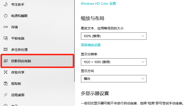 在展开的界面中,即可设置电脑投屏。