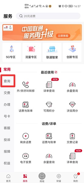 中国联通取消已订购的业务需要在我已订购中,选择业务进行关闭服务即可。以手机华为p50为例,中国联通取消已订购的业务的步骤分为4步,具体操作如下:在中国联通服务界面中,点击查询。