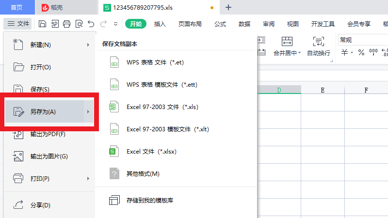 在展开的选项中,点击另存为。