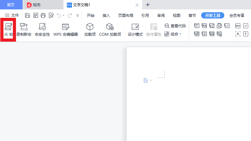 在开发工具界面中,点击js宏。
