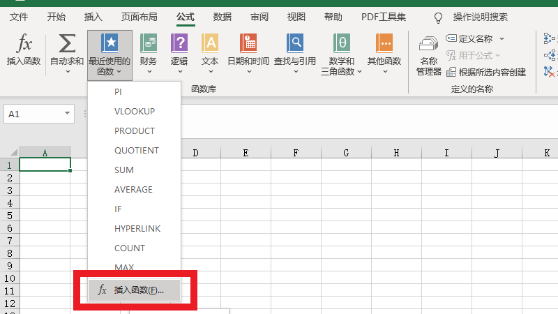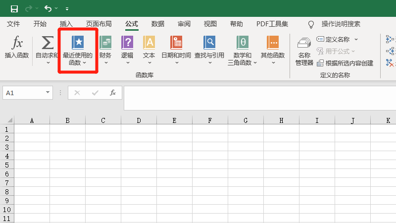 在展开的选项中,点击最近使用的函数。
