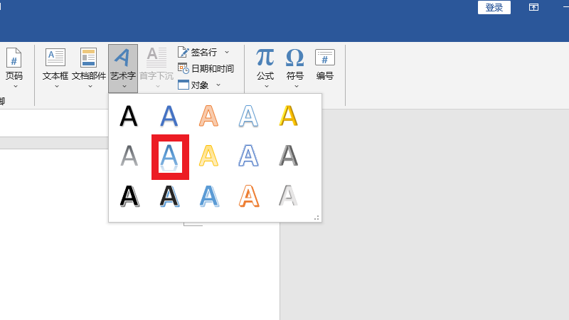 在展开的界面中,选择第二行第二列的艺术字即可。