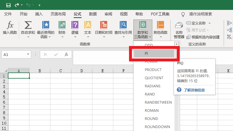 简介:1、在Excel表格界面中,点击顶部公式。2、在展开的选项中,点击数学和三角函数。3、在展开的选项中,点击PI。4、在展开的窗口中,点击确定即可。本视频由联想拯救者Y9000P、Windows 11、Excel 2016录制