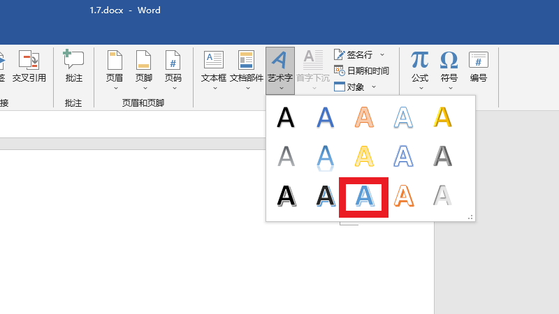 在展开的界面中,选择第三行第三列的艺术字即可。