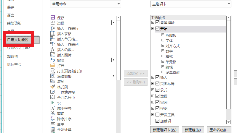 在选项界面,点击自定义功能区。