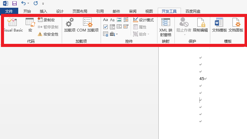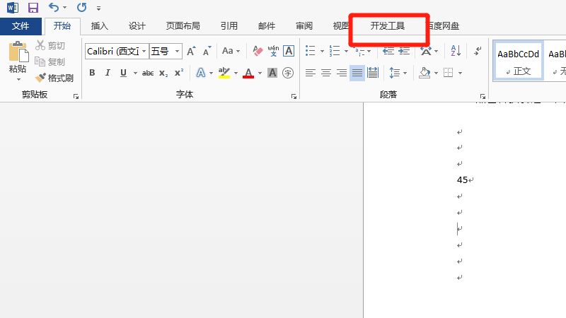 在展开的选项中,即可查看开发选项卡。
