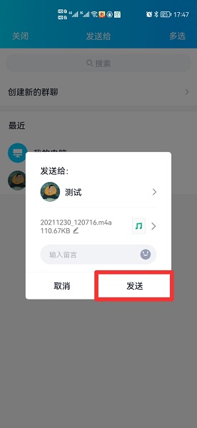 在展开的窗口中,点击发送即可。