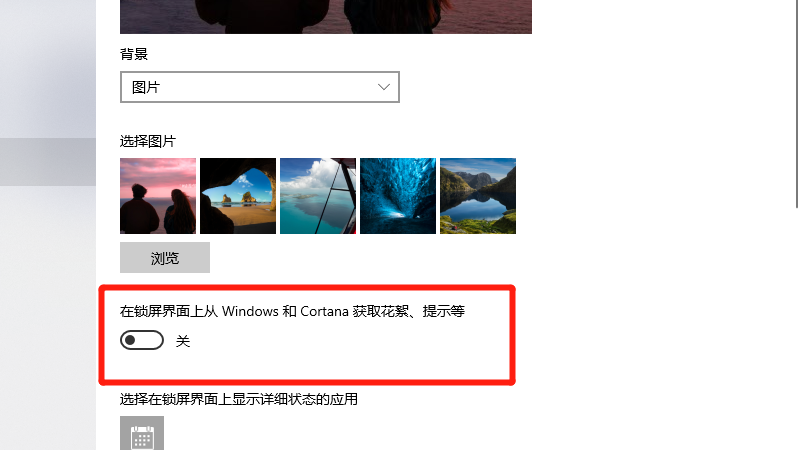在展开的选项中,将在锁屏界面上获取花絮、提示等关闭即可。