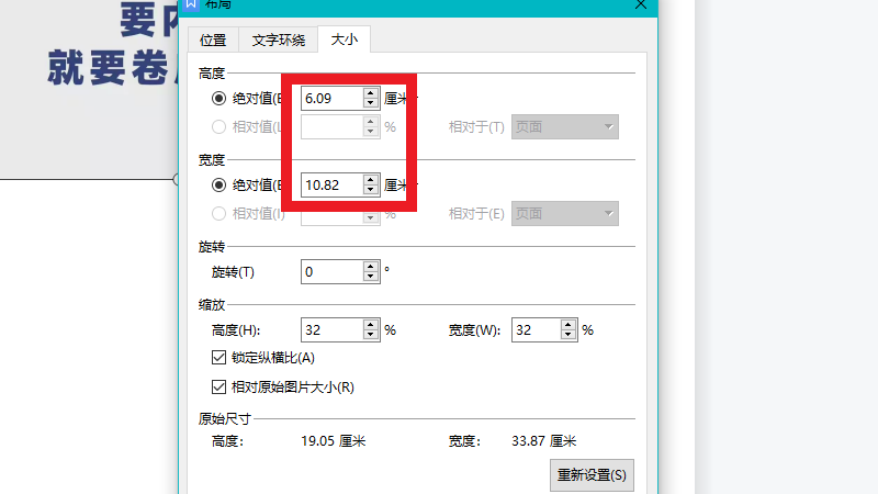 在大小界面中,进行调整即可。