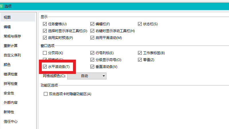 简介:1、在文件界面中,点击选项。2、在选项界面中,点击开启水平滚动条。3、在开启后,点击确定即可。本视频由联想拯救者Y9000P、Windows 11、WPS office 11.1.0.11194录制