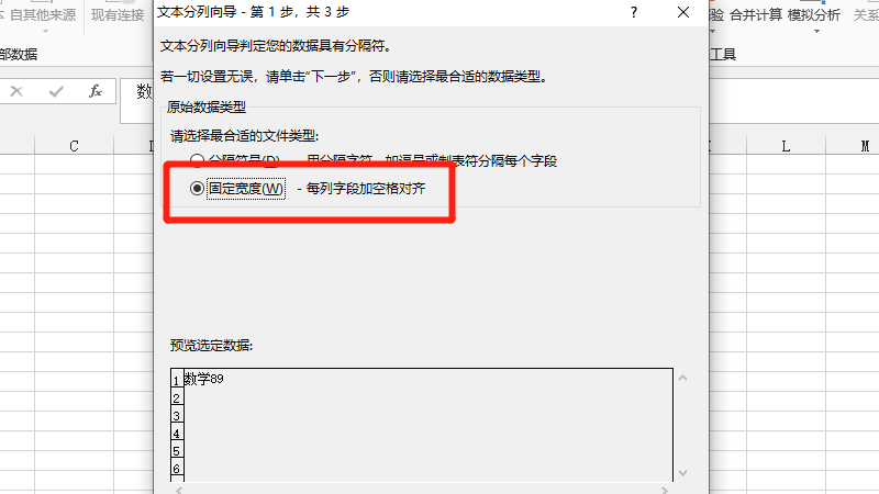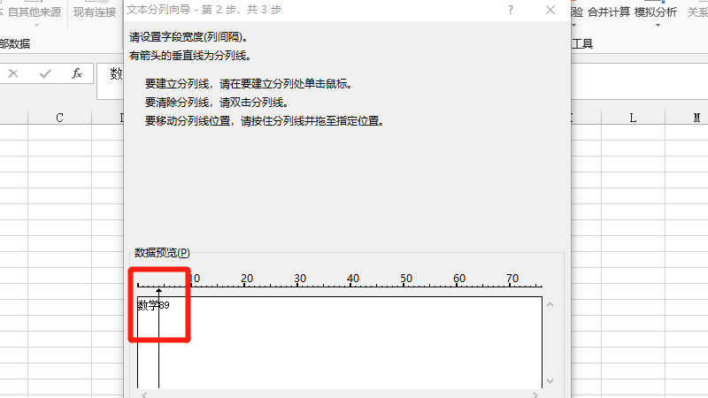 简介:1、在Excel表格界面中,点击顶部数据。2、在展开的选项中,点击分列。3、在展开的选项中,选择固定宽度。4、在数据预览中,拖动分列线至指定位置。5、在设置完成后,点击完成即可。本视频由联想拯救者Y9000P、Windows 11、Excel 2016录制