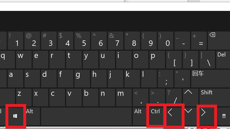 在电脑键盘中,按住Ctrl键+Windows键+左右方向键即可左右分屏。