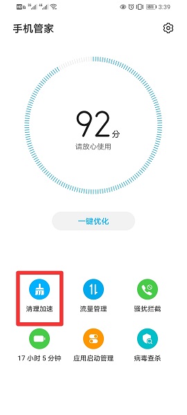 青年大学习总卡可能是因为手机内存过满。以华为p40手机为例,清理手机垃圾释放内存步骤为2步,具体操作如下:在手机管家界面中,点击清理加速。