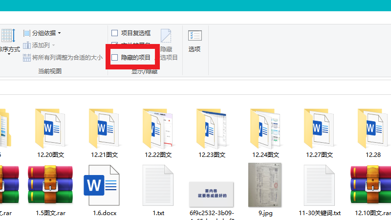 在展开的界面中,点击隐藏的项目即可。