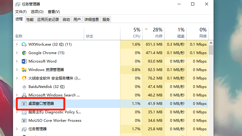 展开的选项中,选择桌面窗口管理器。