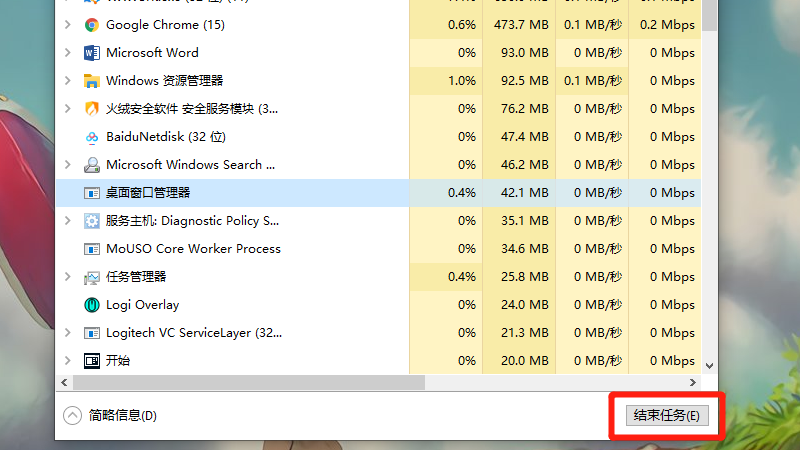 在选中后,点击结束任务即可。