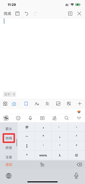 在符号界面中,点击特殊。
