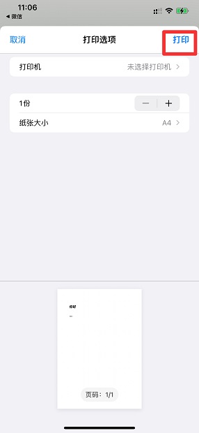 在打印选项界面中,点击打印即可。