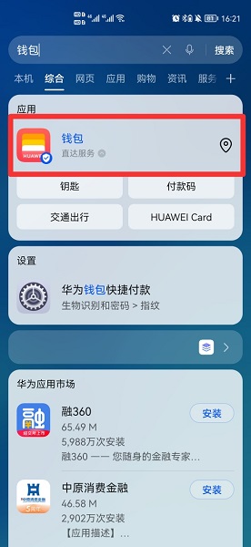 在搜索结果中,选择钱包即可。