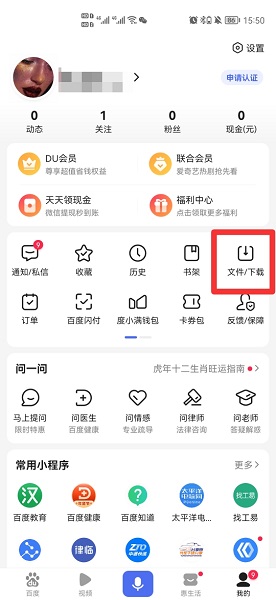 查找我的下载记录可以在百度APP我的界面中,选择文件/下载进行查看即可。以手机华为p50为例,查找我的下载记录的步骤分为2步,具体操作如下:在百度我的界面中,点击文件/下载。