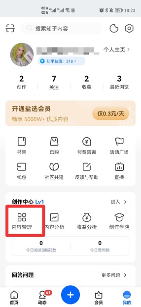 删除知乎提问需要在知乎提问中,选择问题进行删除即可。以手机华为p50为例,删除知乎提问的步骤分为5步,具体操作如下:在知乎我的界面中,点击内容管理。