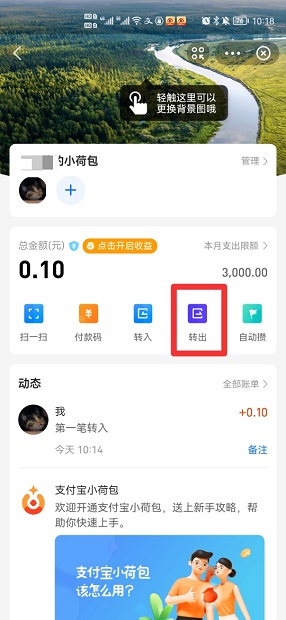 简介:1、在支付宝界面中,点击顶部搜索框。2、在展开的界面中,搜索小荷包。3、在展开的界面中,点击支付宝小荷包。4、在展开的界面中,点击转出。5、在展开的界面中,点击确认转出到余额即可。本视频由华为p50、HarmonyOS2.0、支付宝 10.2.53录制