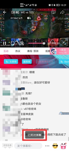 在选择弹图标后,即可关闭弹幕。