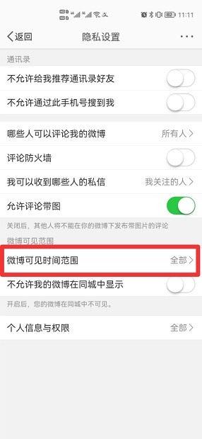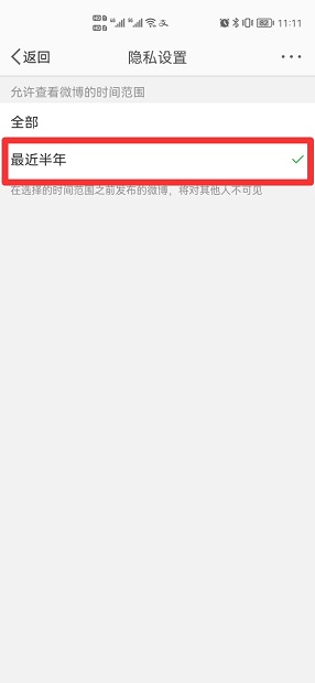 简介:1、在微博我的界面中,点击右上角设置。2、在设置界面中,点击隐私设置。3、在展开的界面中,点击微博可见时间范围。4、在展开的界面中,选择最近半年即可。本视频由华为p50、HarmonyOS 2.0.0、微博 12.1.1录制