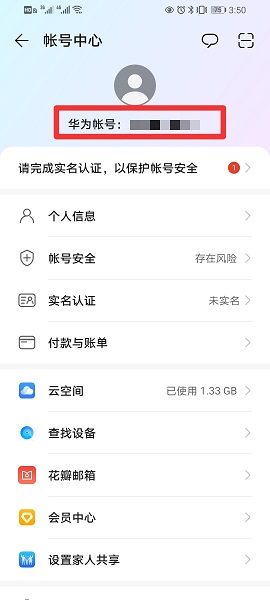 在华为账号界面中,查看账号即可。