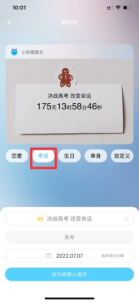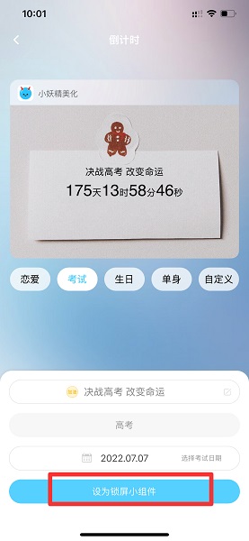 简介:1、在小妖精美化界面中,点击倒计时。2、在倒计时界面中,点击考试。3、在展开的界面中,点击设为锁屏小组件即可。本视频由iPhone 12、iOS15.4、小妖精美化5.1.2录制