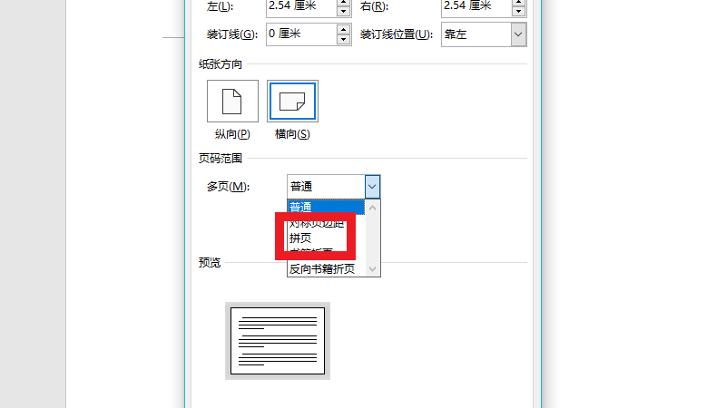 在展开的界面中,将页码范围设置为拼页。