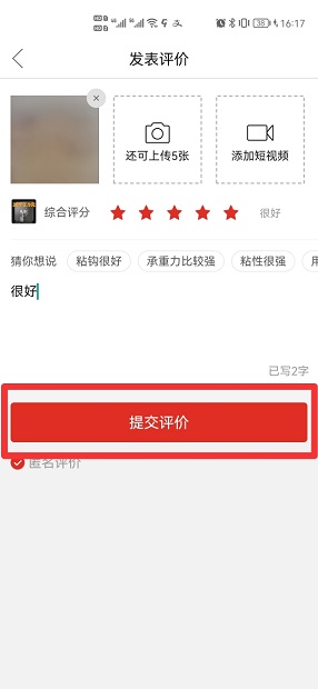 在勾选匿名评价后,点击提交评价即可。