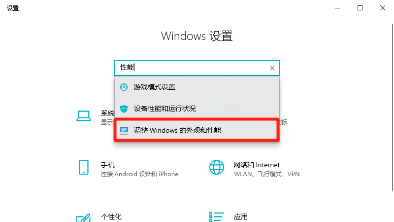 在展开的选项中,点击调整Windows的外观和性能。