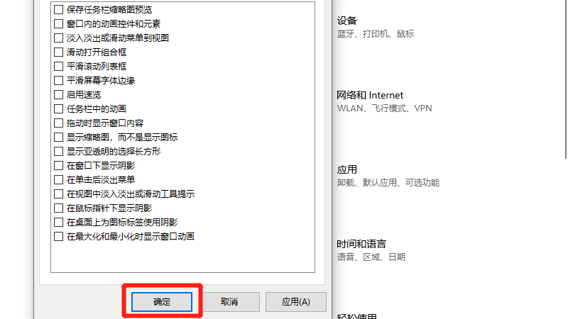 在展开的性能选项中,选择调整为最佳性能。