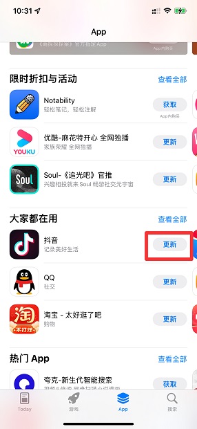 简介:1、在App Store界面中,点击APP。 2、在展开的界面中,点击更新即可。本视频由iPhone12、iOS15.4、抖音18.7.0录制